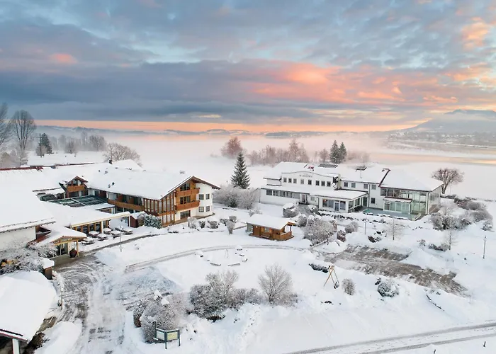 Das Hartungs Hoteldorf Füssen in einer 6 km Entfernung vom Museum der Stadt Füssen lockt mit einem türkischen Dampfbad, einem Behandlungsraum und einem Hallenbad an. Das Hotel stellt WLAN im ganzen Gebäude und 40 Zimmer mit Blick auf die Berge zur Verfügung.